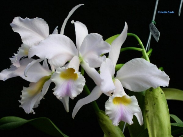 Awarded in 2002 and exhibited by Drago Orchids of Florida. This photo is of an off-season flowering in the summer heat, yet retains good color.
