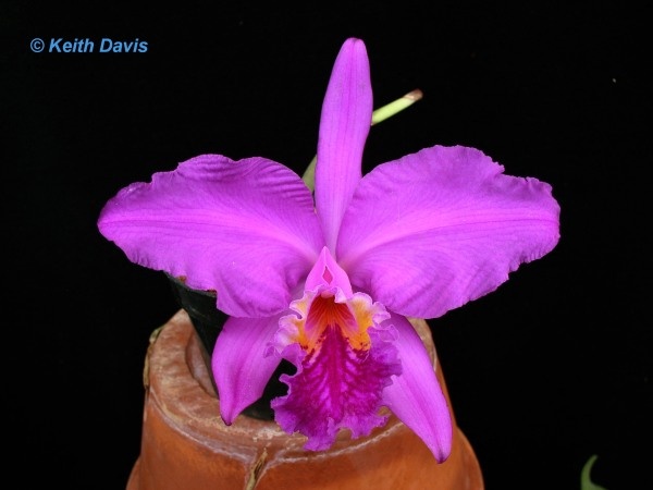 Historical clone that received a First Class Certificate (FCC) from the Royal Horticultural Society on February 23, 1909. In 1987, the plant received an Award of Merit (AM) from the American Orchid Society. This flower is considered a non-peoloric splash petal which is rare in cattleya species. Peloric is where the petals tend to mimic the lip as often seen in C. intermedia var. aquinii.