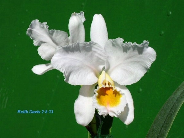 This was granted the Award of Merit by the AOS on December 13, 2014. The plant came from AWZ Orchids in Brazil. I ordered a division from their division list that goes out a few weeks before Redlands. Orders are brought up to Redlands for pick up. This was my first blooming with 2 spikes and two blooms on each. It is also a true alba (vs. albescence) with no hint of lavender in any of the segments or lip. The blooms are large for the color type and very flat.