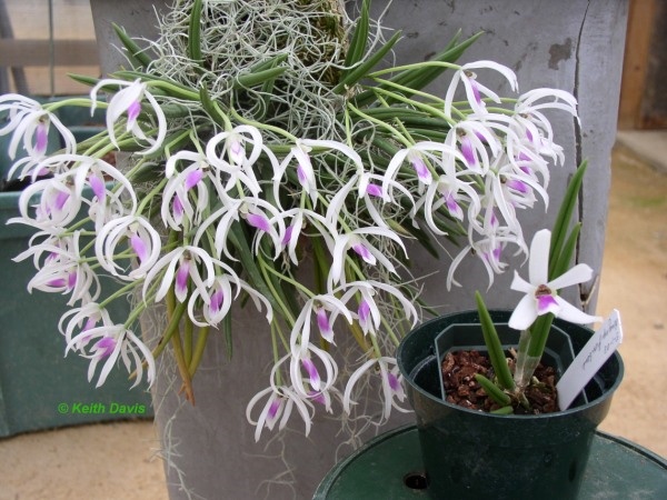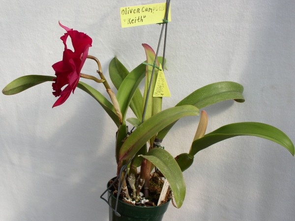 The Pot. Mem. Oliver Campbell ‘Keith’ was given to me as a first bloom seedling from my friend Dr. Arthur Burke in Richmond, VA. He has what I consider the best old collection of cattleyas probably in existence. This cross was made by his friend Oliver Campbell and Dr. Burke purchased many of the seedlings from the cross. All have bloomed out to be excellent. This plant has a good flower stem of which very few progeny from any Circle of Life have. Poor stem habit is a major flaw in using COL as a parent. But every once in a while there will be an exception. I have also included a side shot to show the stem that holds the blooms up without any staking. The blooms on this are about 4.5” across and the plant is still young.